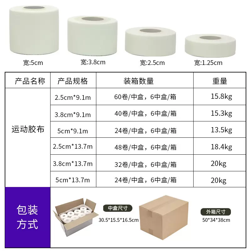 Cotton kinesiology tape is made of 95% cotton and 5% spandex. lt is skin-friendly, breathable. and elastic. There are five regular sizes and 24 colors for your choice. lt is the most popular body tape on the market. lt is widely used by fitness enthusiasts, professional athletes, and health therapists. Help them prevent and relieve muscle strain and soreness. Great for running,swimming and more.